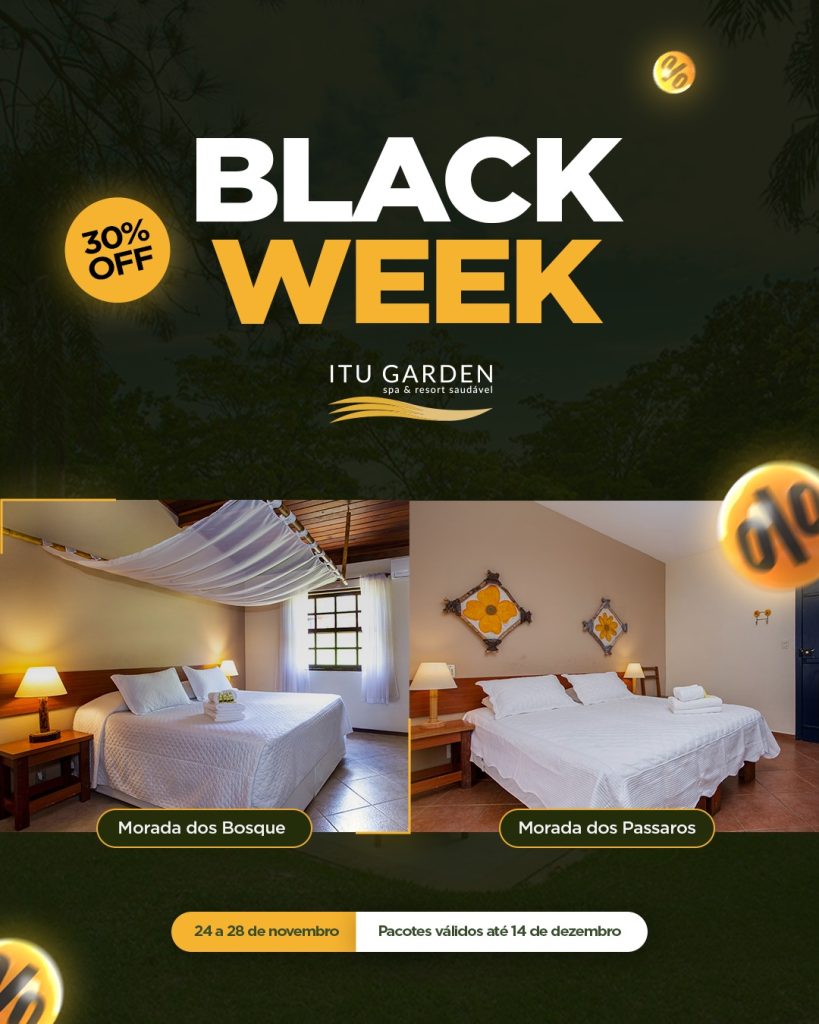 De 24 a 28 de novembro faça sua reserva com 30% off nas acomodações Moradas dos Bosques e Morada dos Pássaros.